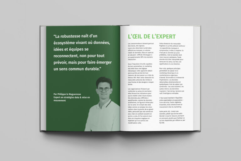 Le résultat : un design éditorial structuré et pérenne, au service d’une réflexion marketing stratégique et engagée.