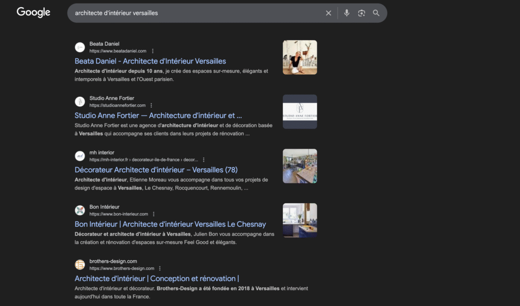 Nous avons accompagné Beata Daniel, architecte d’intérieur à Versailles, dans l’optimisation SEO de son site web afin d’améliorer sa visibilité en ligne. A