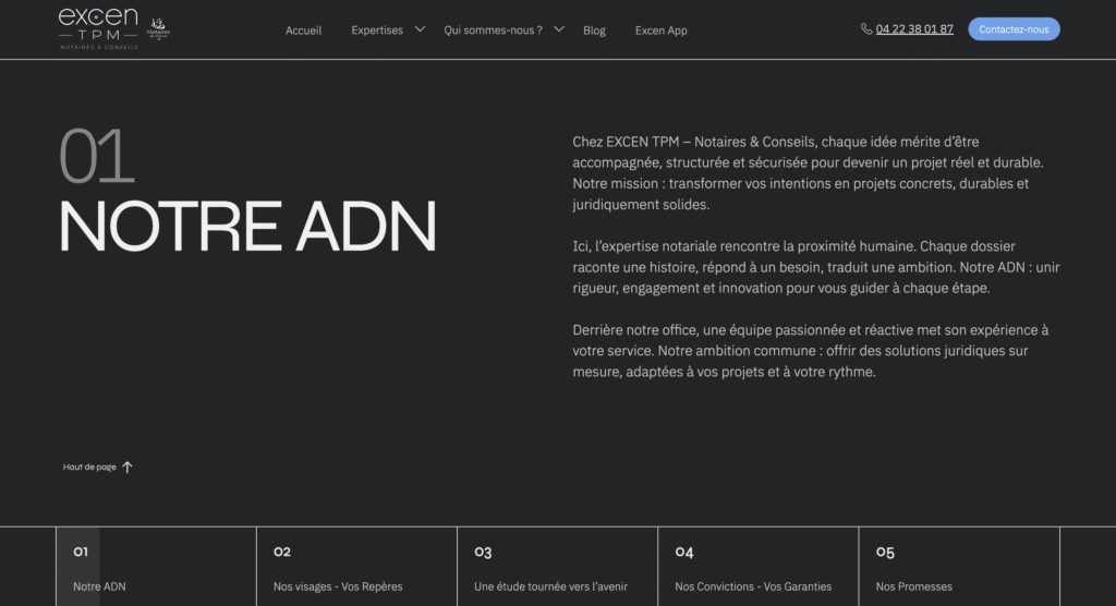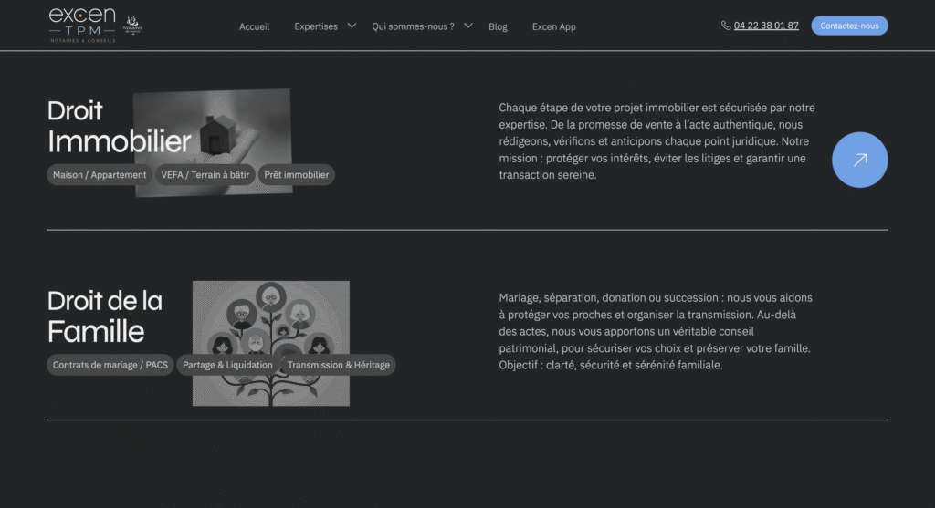 Nous avons accompagné Maître Nadia Pechet Semenou, notaire associée au sein de EXCEN TPM, dans la conception et le développement de son site web.